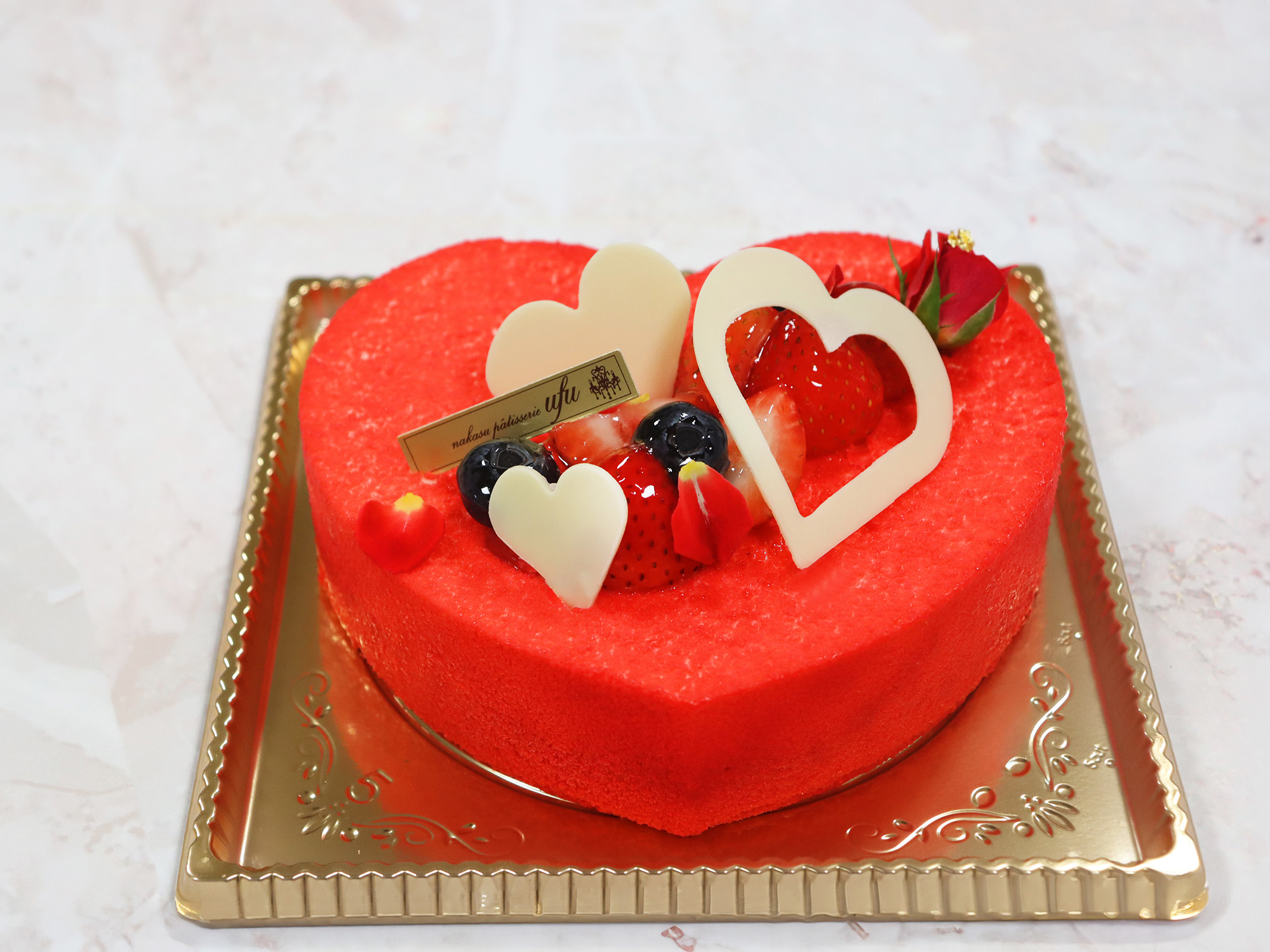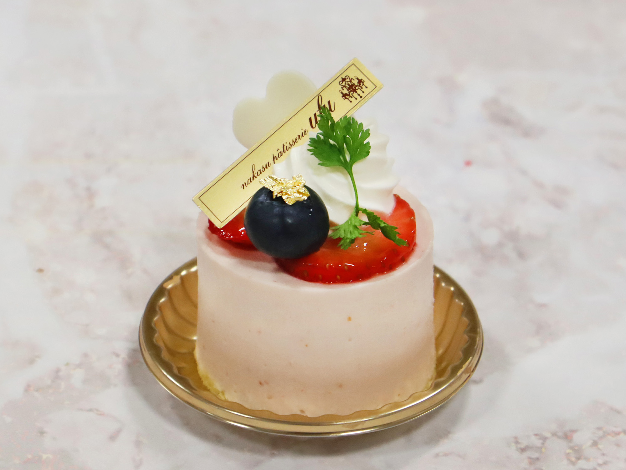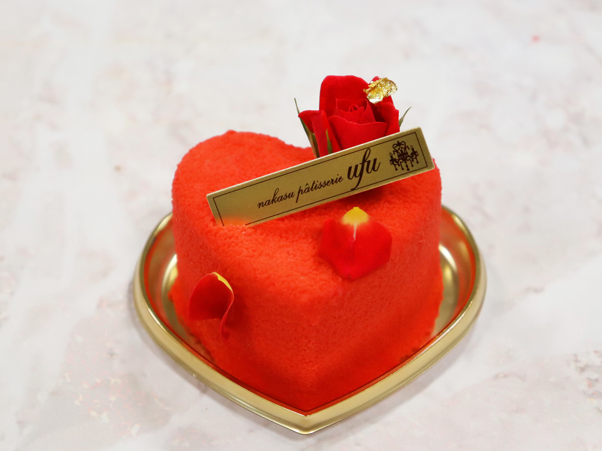 いちごとシャンパンの2層のムースをかわいいハート型で。