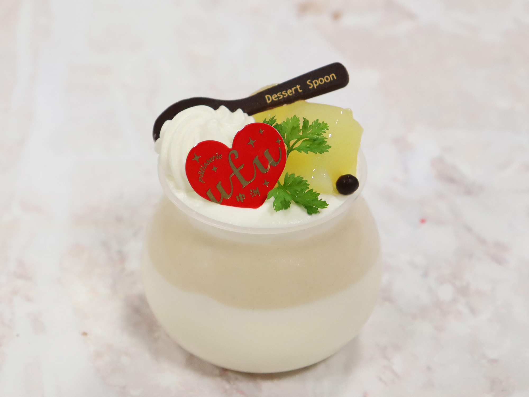 ホワイトチョコと紅茶のムースに洋梨のジュレをとじこめたケーキ